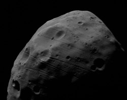 Phobos on mitoiltaan vain 27 x 22 x 19 kilometriä. Se on myös yksi aurinkokunnan tummimmista tunnetuista kohteista. Kappaleen uskotaan olevan asteroidi, jonka Mars on kaapannut painovoimallaan.