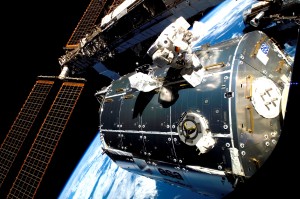 Kuvassa ESAn astronautti avaruuskävelyllä Kansainvälisen avaruusaseman ulkopuolella. Kuva ESA / Nasa