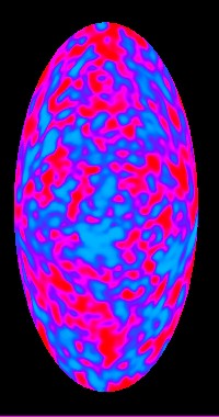 COBE-satelliitilla tehty mikroaaltotaustasäteilyn tutkiminen toi Nobel-palkinnon. Kuvassa satelliitin tekemä havainto taustasäteilyn epätasaisuudesta. Kuva Nasa / COBE