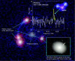 Nyt löydetyn vesihöyryn uskotaan olevan galaksin keskustassa lymyävää supermassiivista mustaa aukkoa ruokkivassa kaasu- ja pölypilvessä. Havainto tehtiin Saksassa olevalla Max Planck -instituutin 100-metrisellä radioteleskoopilla käyttämällä havaintokohteen ja Maan välissä olevaa galaksia painovoimalinssinä.