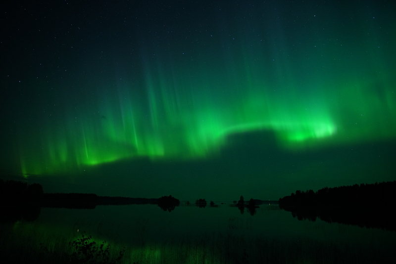 Yhdennäköisyys kuvanlaadussa oli niin hämmentävä, että päätin viettää vielä toisen yön ulkona objektiiviveljesten kanssa. Ilmatieteen laitoksen magnetometrikäyrät olivat hohtaneet yötolkulla punaisina, mutta vasta kolmantena yönä taivas viimein avautui pilviverhostaan. Päädyin tutun järven rantaan ja edessäni oli tanssiva revontulivyö. Tilanne oli sikäli kiusallinen, että mukana oli kolme objektiivia mutta vain yksi kamera. Lisäkameroita teki totisesti mieli.