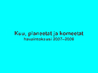 Sain osan Cygnuksen esityksistä valmiiksi. Ensimmäisenä vuorossa olleet Kuu, planeetta ja komeetta -jaoston ohjelmat on nyt muistitikulla odottamassa siirtoa läppärille.