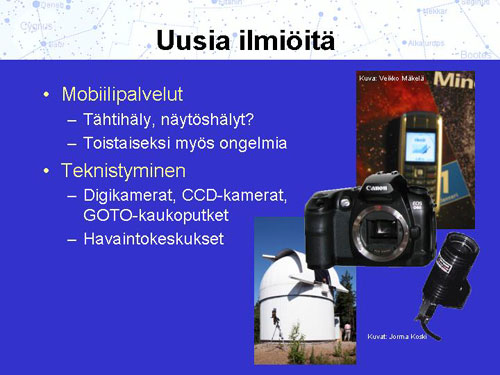 Tässä esityksen loppupuolelta esimerkkikalvo, jossa kerron havaintotoimintaan tulleista uusista ilmiöistä: