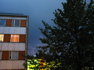 Tuli viime yönä valvottu sen verran myöhään, että etelästä Viron puolelta Suomenlahden yli tuleva ukkonen aikoi lähestyä Helsinkiä. Havahduin irkissä roikkuessani siihen, että meren suunnalta kuului jatkuvaa murinaa. Jonkun ajan päästä alkoi välkkyäkin.