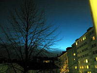 Ikkunastani katsoen havaintohorisonttini rajautuu eteläkaakon ja lounaan välille. Korkeammalle taivaalle näkyy vähän paremmin, joskin vain zeniitin eteläpuolelle. Tämäkin on täällä umpirakennetussa kaupunginosassa aika hyvin.