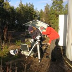 - Kaj Wikstedt käyttää kaukoputkessa Herschel-kiilaa, jonka keraamisen lämpösuojan lävitse Aurinko paistaa himmeänä.