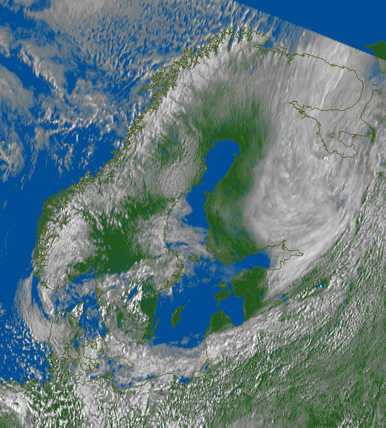 matalapainesysteemiin, jonka keskus oli Vienanmeren yllä. Sitä ympäröivät