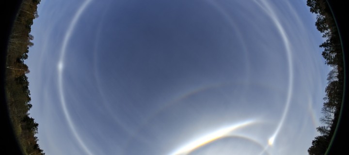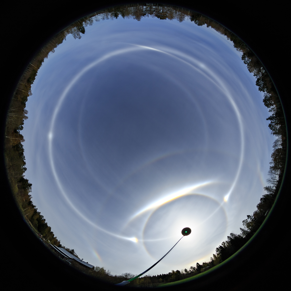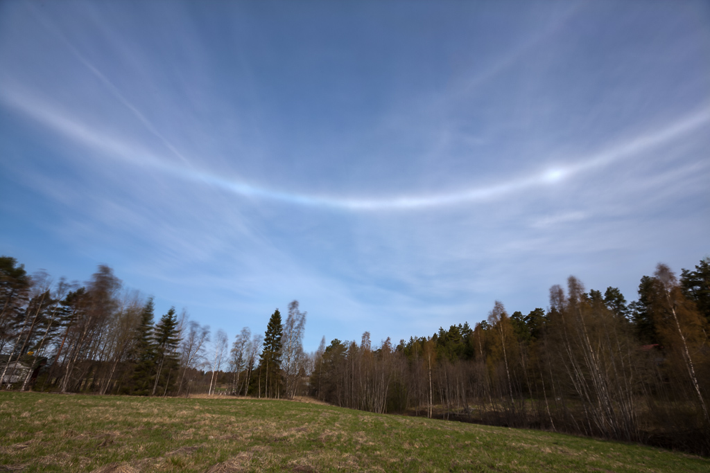 Kuva 2. Nivalan seudulla cirrostratus-pilvi oli aivan erityisen tasainen ja halot kirkkaita ympäri koko taivaanpallon. Kuva: Marko Mikkilä
