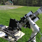 Kuvauskoneena toimii vanha sotaratsu, Lenovo T61. Kamera toimii muuten loistavasti, mutta näytön kirkkaus ei aivan riitä ulkokäyttöön keskikesän auringossa, siksi tuo edellämainittu ”teltta” pitää saada kuntoon seuraavaan havaintokauteen mennessä.
