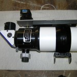 Kaukoputkien tarkentimet on toki moottoroitu matkan varrella. Vanhana ja laiskana haluan mieluiten istua tuolilla ja hoitaa hommat tietokoneen näyttöä katsellen ja nappeja painellen. Lunt-teleskoopeissa on moottoreina RoboFocus-askelmoottorit ohjaimineen ja Sky-Watcher 120 ED:ssä Orion Accu-Focus DC -moottori. Mainittakoon, että Luntilta ei löytynyt mitään apua tarkentimen moottorointiin, joten moottori piti tehdä ihan itse.