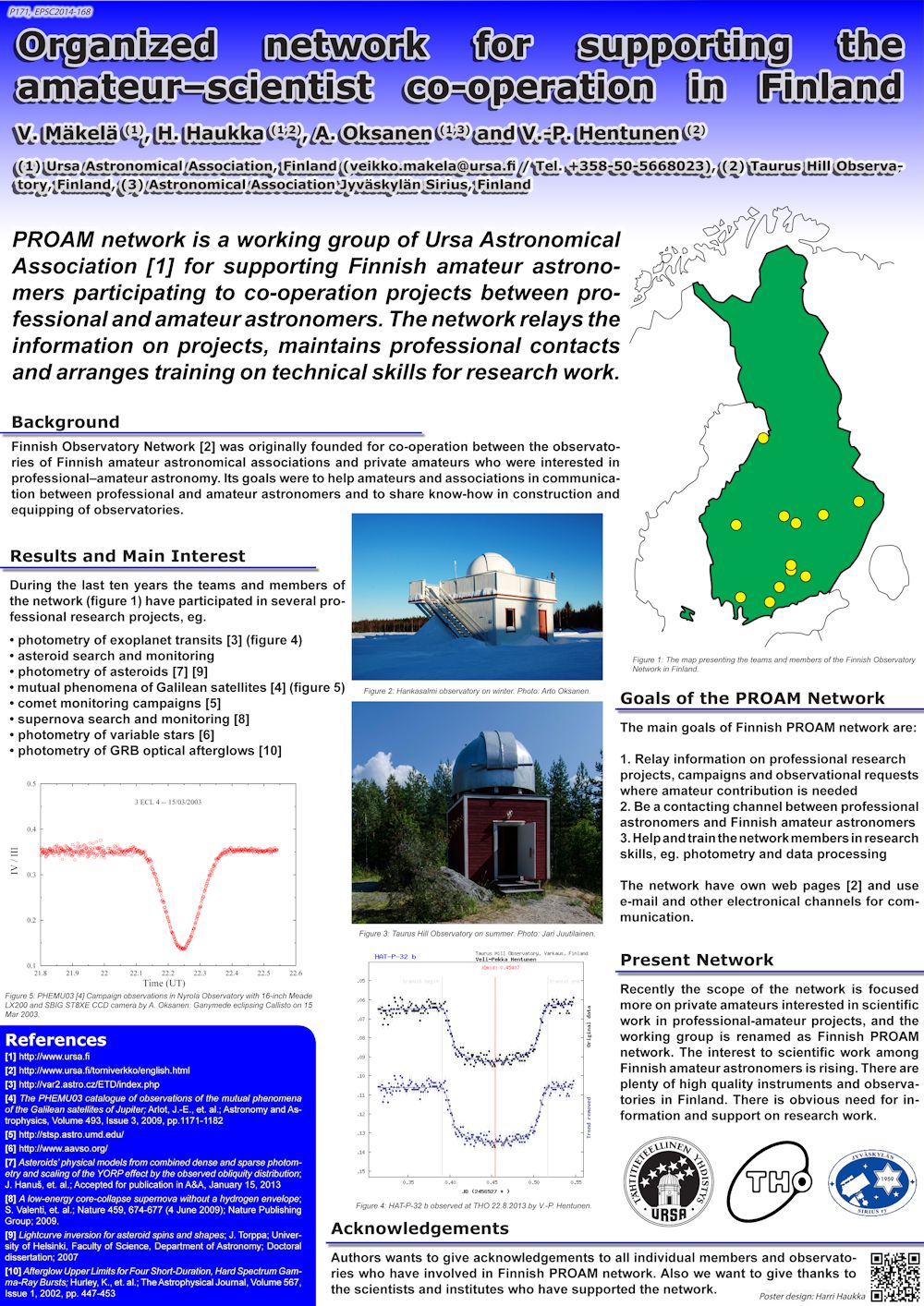 Suomalaisten harrastajaposteri kertoi PROAM-verkoston (ent. Havaintotorniverkko) toiminnasta ja tulevaisuuden tavoitteista.