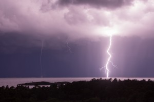 Helteiden lämmittämä meri suosi erityisesti elokuussa trombien muodostumista. Vaikka olosuhteet olivat otolliset, ei trombia tai suppilopilveä voi edelleenkään pitää tavallisena myrskyilmiönä. Kaudella 2014 Taivaanvahtiin tuli 8 trombi- ja 5 suppilopilvihavaintoa. Patrick Blomin 13.8. kuvaama yöukkonen on varmaan piirtynyt harrastajien verkkokalvoille uudeksi suomalaisen myrskykuvan referenssiksi. Salamanisku valaisee upean saaristomaiseman trombeineen. Muista pyörretuulista tuli havaintoja vain 3.
