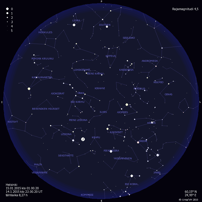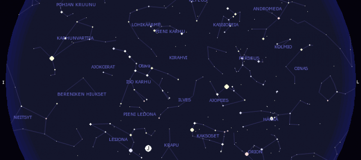 Uuden vuoden koittaessa tammikuussa yöt ovat vielä hyvin pitkät, vaikka talvipäivänseisaus onkin jo takanapäin. Tammikuussa pimeää riittää Etelä-Suomessakin 12 tuntia, joten mahdollisuudet tähtitaivaan havaitsemiseen ovat hyvät!