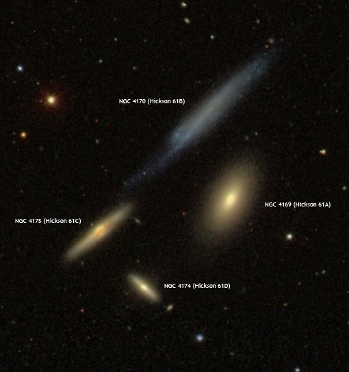 10. päivä toukokuuta 1864 saksalainen tähtitietelijä Heinrich Louis d’Arrest (1822–1875) oli havaitsemassa galaksiparvea Kööpenhaminan observatorion 28-senttisellä f/17.5 Merz-linssiputkella. Havaitessaan galaksijoukkoa hän huomasi alueella kaksi ennestään tuntematonta sumua. Sää oli kuitenkin tuulinen eikä taivas ollut täysin selkeä. D’Arrest oli itsekin hieman epävarma havainnostaan. Nykyisin tiedetäänkin, että hänen havaitsemansa kaksi kohdetta (NGC 4170 ja -71) ovat vain yksittäisiä tähtiä. Ensimmäinen on magnitudia 14.6 ja jälkimmäinen magnitudia 14.8. Todellista haastetta kaipaava voi muuten yrittää nähdä lähistöltä löytyvää galaksijoukkoa AGC 1495. Kirkkain yksittäinen galaksi on kuitenkin erittäin himmeä magnitudin 16.4 2MASX J12132824+2915253. Onkohan kukaan galaksijoukkoa yrittänytkään nähdä?