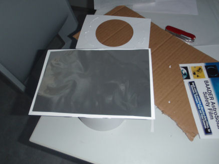 Kuva 9. Aurinkosuodin kaukoputken objektiivipäässä. Nyt auringon katselu kaukoputkella on turvallista!