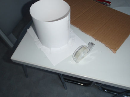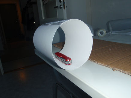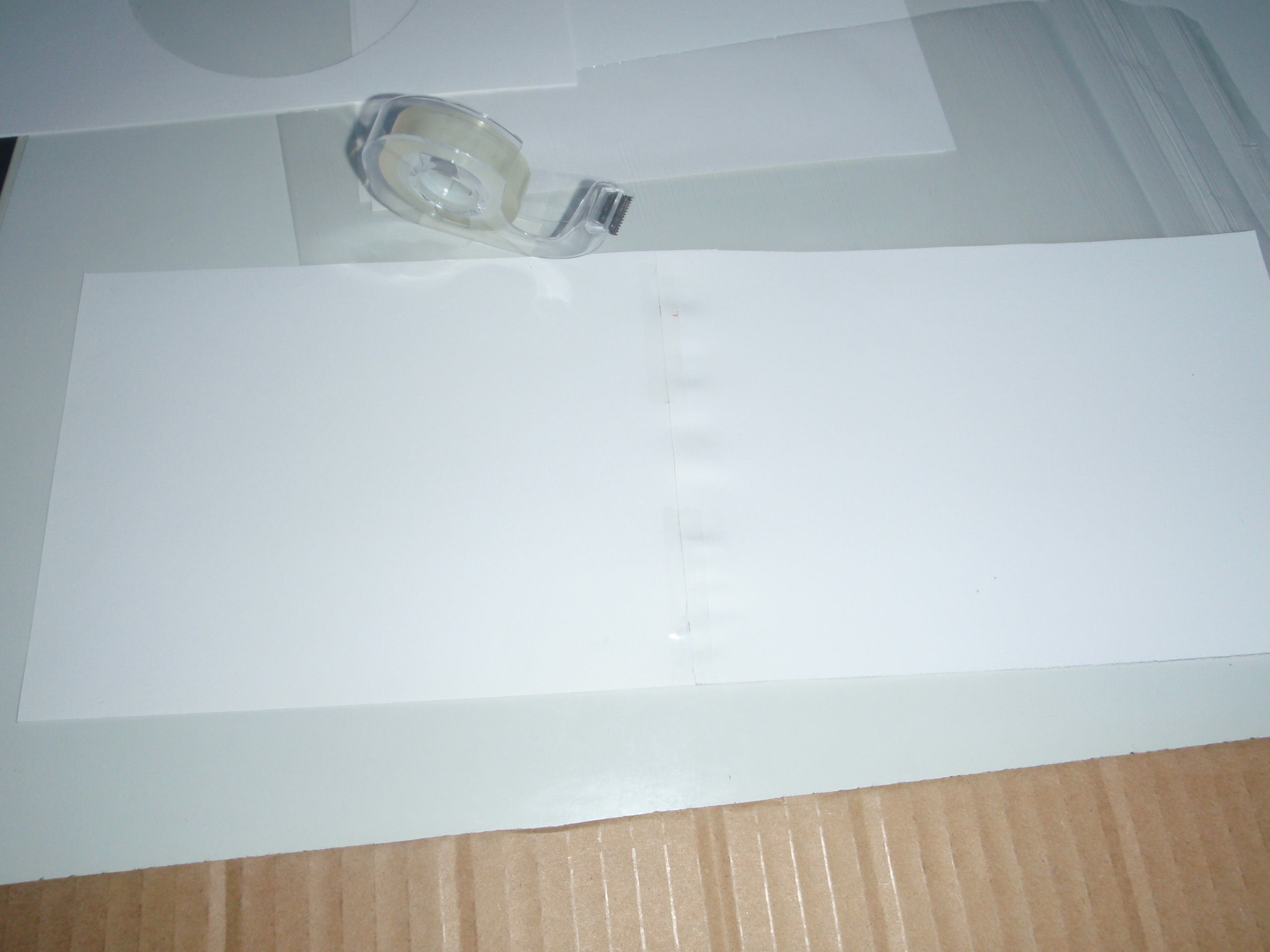Leikkaa sellainen kartonginpala, jonka pitkä sivu vastaa havaintovälineesi objektiivipään ympärysmittaa. Jos sinulla on käytössäsi vain pieniä kartonkiarkkeja, kuten minulla tässä esimerkissä, joudut tekemään tämän kartonginpalan kahdesta pienemmästä palasta teippaamalla ne yhteen, kuten kuvasta 3 käy ilmi.