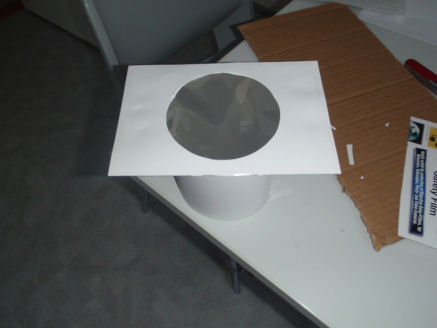 Kuva 2. Reiän leikkaaminen kartonkiin. Reiän halkaisija vastaa havaintovälineesi objektiivipään halkaisijaa.