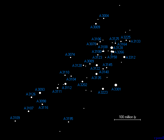 Kuva 3. Heilurikellon superjoukon kartta. (Kuva: Richard Powell, Atlas of the Universe).
