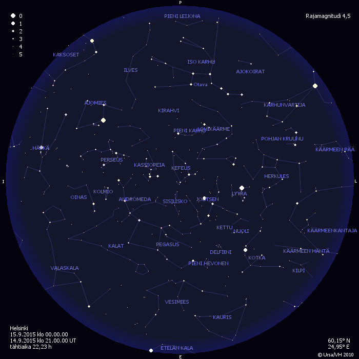 Syys–lokakuussa pimeän taivaan havaintokausi on parhaimmillaan! Linnunrata loistaa iltaisin lounaisella taivaalla ja pimeää riittää jo reilusti! Syyskuun lopussa tapahtuu myös täydellinen kuunpimennys, joka on havaittavissa aivan loppuvaiheita lukuunottamatta koko Suomessa.
