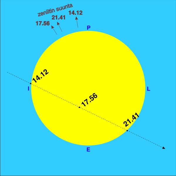 Auringon korkeus tapahtuman aikana