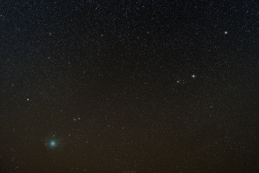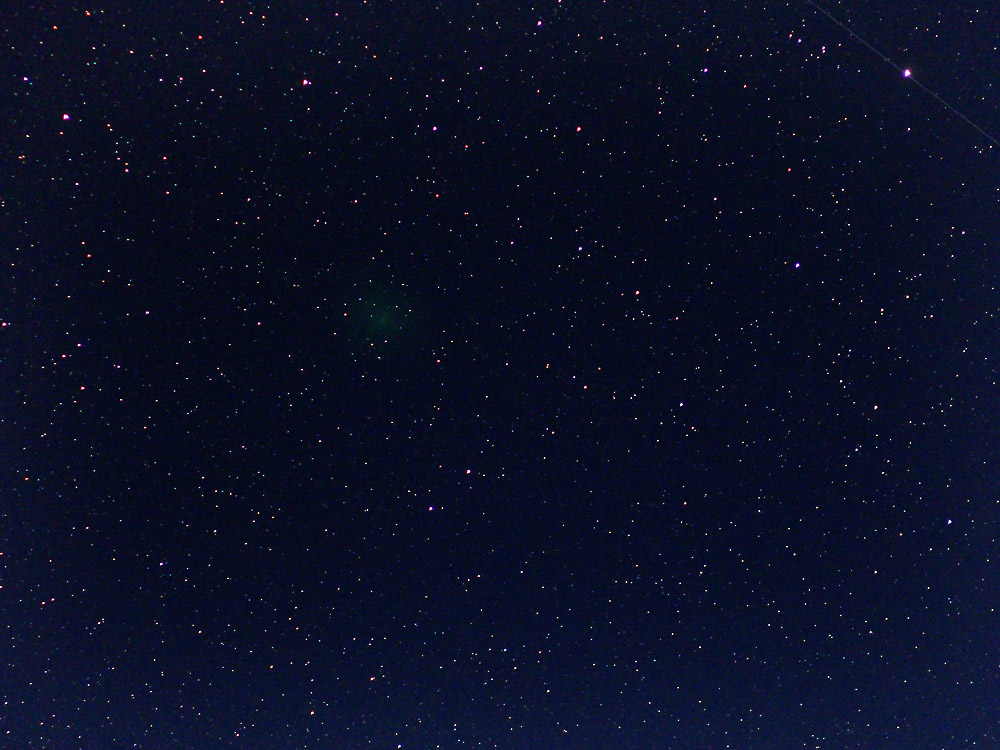 Kuva 6. Jorma Mäntylän havainto LINEAR-komeetasta 6.5.2016. Kuvauskalustona Pentax K-5 135 mm, f/2,8, 35 s, ISO 800 + oGps1 Astrotracer.