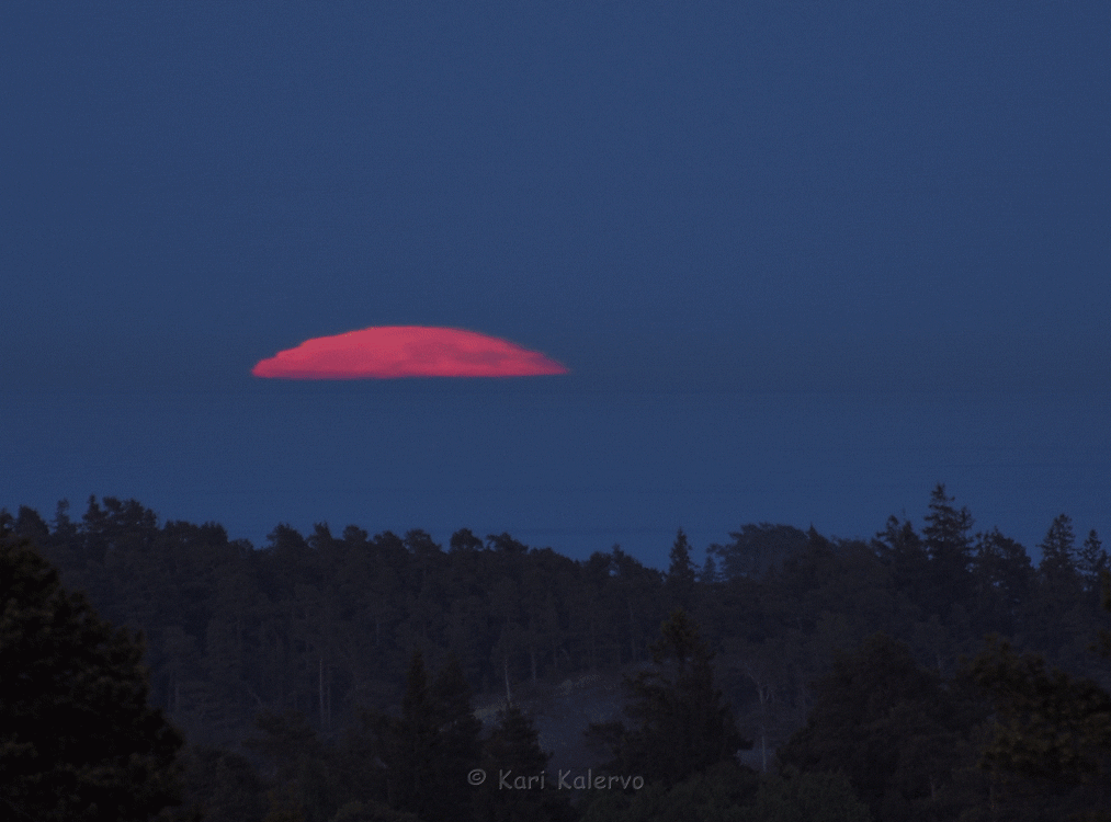 Kari Kalervo havaitsi ja kuvasi Kirkkonummen Porkkalanniemellä nousevaa Kuuta 23.5.2016. Alla Karin havaintokertomus ja animoitu kuva Kuun noususta.