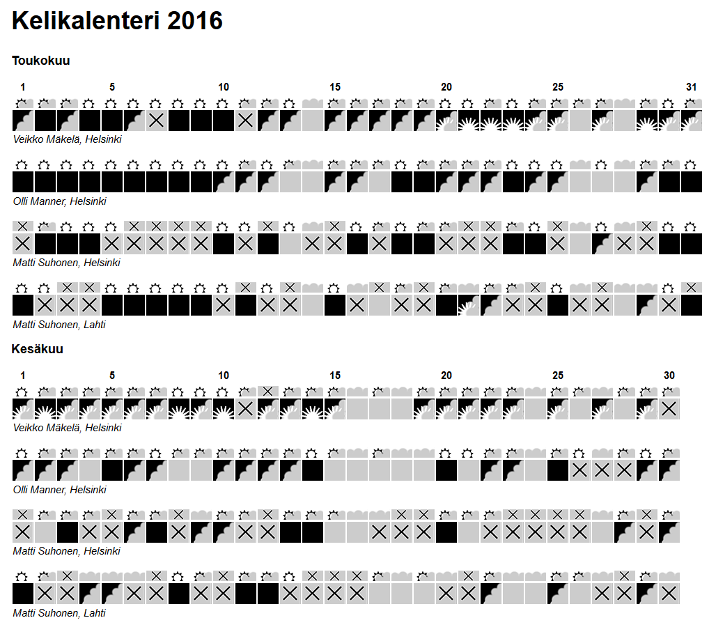 Kelikalenteri touko-kesäkuu 2016 Sää ja havainto-olosuhteet 12.9.2016 0 Klikkaa kuvaa avataksesi kelikalenterin täyskokoon. Kelikalenterin toteutus: Ilkka Santtila