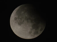 Kuva 2: Hyadien Hyadum I -tähti peittyy Kuun taakse Helsingissä 4.3.2017 klo 23.06 Kuun pohjoisreunan taakse.