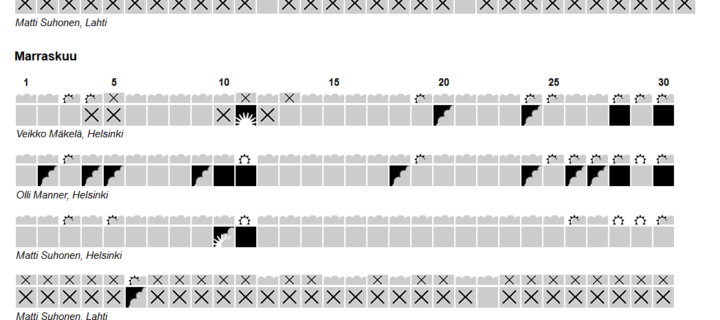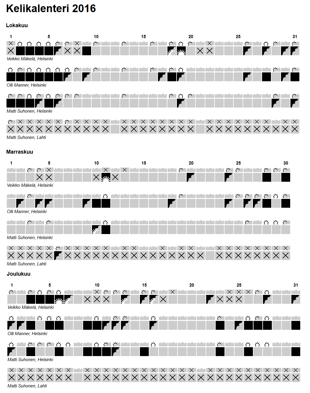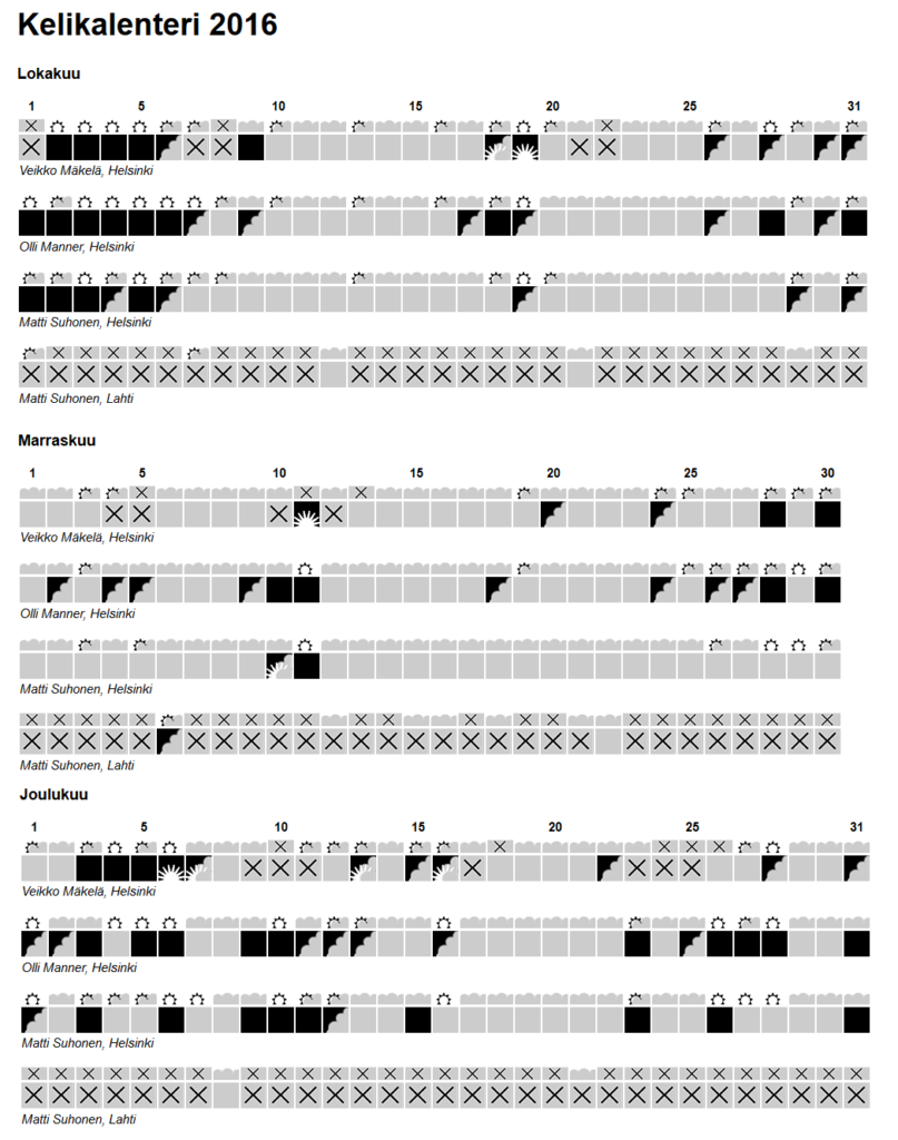 Kelikalenteri loka-joulukuu 2016 Sää ja havainto-olosuhteet 13.2.2017 0 Napsauta kuvaa avataksesi kelikalenterin täyskokoon. Kelikalenterin toteutus: Ilkka Santtila