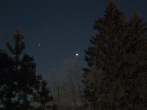 Kevättalven iltataivasta kaunisti Venus. Myös Merkurius ja Venus olivat hyvin havaittavissa kuulaina iltoina.