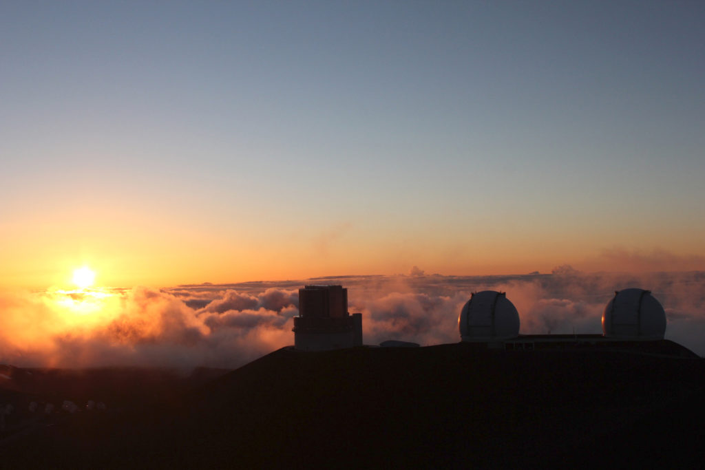 Matka jatkui Havaijille, jossa sentään olin varannut etukäteen retken Mauna Kealle. Elämys oli mahtava, mutta ensi kerralla taidan sittenkin ajaa vuorelle itse autonvuokrausfirmojen pikkupräntistä ja erittäin ohuesta ilmasta huolimatta. (Observatoriohuippu on n. 4200m merenpinnasta ja sen kyllä huomaa kävellessä ja puhuessa. Vuokra-autojen ajo vierailukeskuksen (2800m) ohi mitätöi vakuutuksen.) Mutta auringonlasku Subaru- ja Keck-teleskooppien taustan pilvimereen on todella vaikuttava kokemus ja vaivan arvoista! Samalla voi ihastella kupujen aukeamista hämärtyvään yöhön.