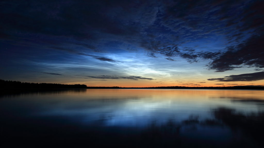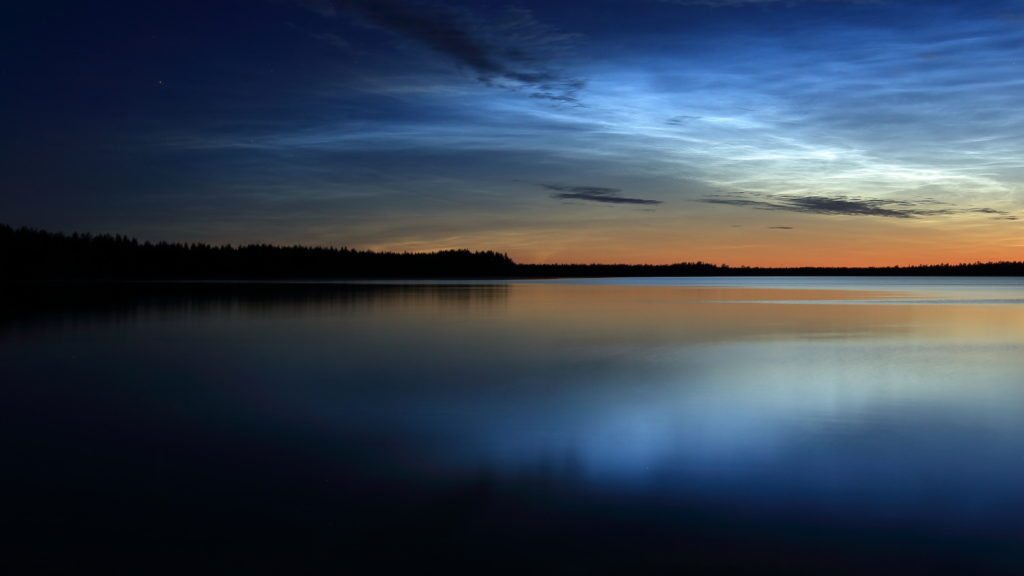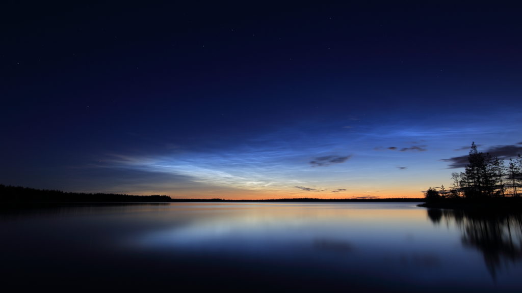 Kirkkaiden yöpilvien ja revontulien näytelmissä on jotakin samankaltaista. Tiedän mistä puhun, koska olen kokenut molempia, useita. Mutta toisin on niiden valokuvaamisen laita, ainakin omalla kohdallani. Kun revontulien kuvaaminen on tyypillisesti rauhallista odottamista, yöpilvien kohdalla iskee paniikki. Yöpilvet syttyvät loistoonsa usein vasta vuorokauden vaihtuessa, ja hämärän hetki on kovin lyhyt.