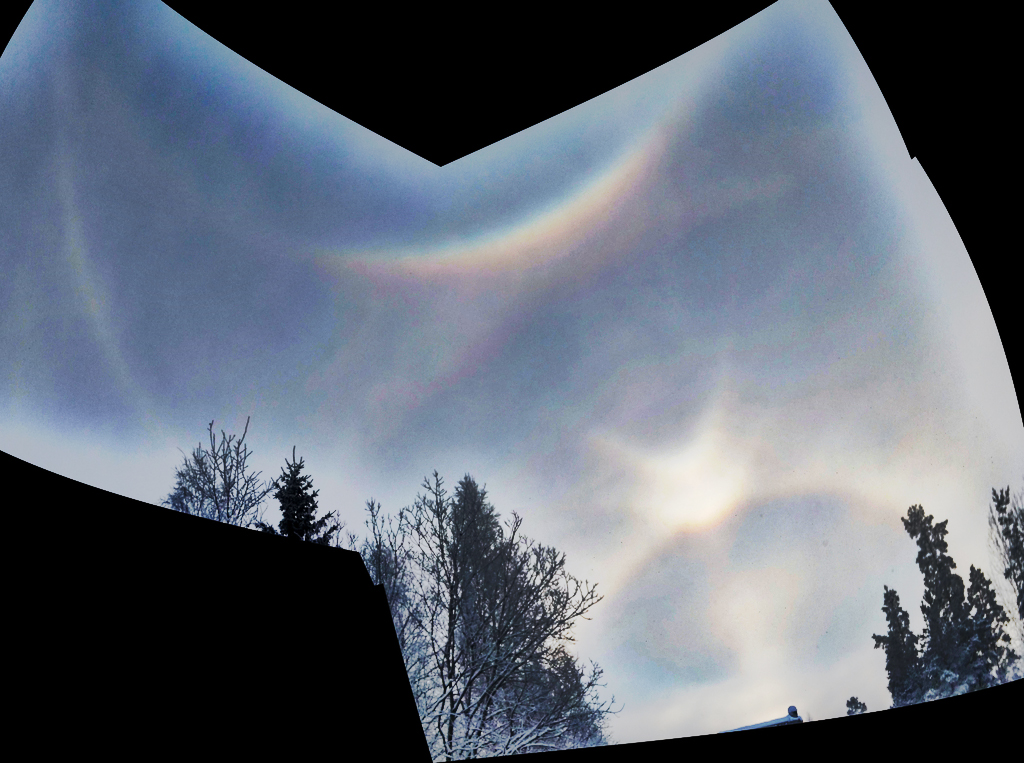 Mielettömän hieno ilma. Pilareita esiintyi vähän joka puolella. Paikoin kaikkein korkeimman pilarin yläpuolelle näytti ilmaantuvan “Y” ja sen sivuille halorengasta. Olin silloin parkkeeraamassa autoa, joten en ehtinyt ihan saamaan siitä kuvaa.