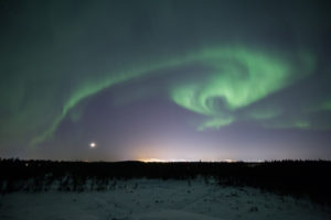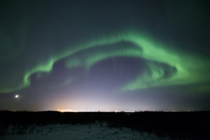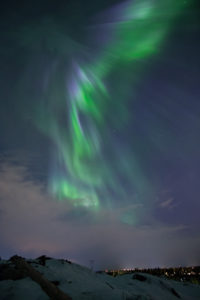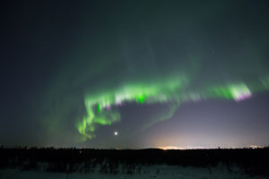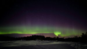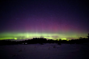 Yht’äkkiä näytti, kuin revontulet olisivat piirtäneet taivaalle myös sydämen. Vähän muotopuolen mutta kuitenkin.