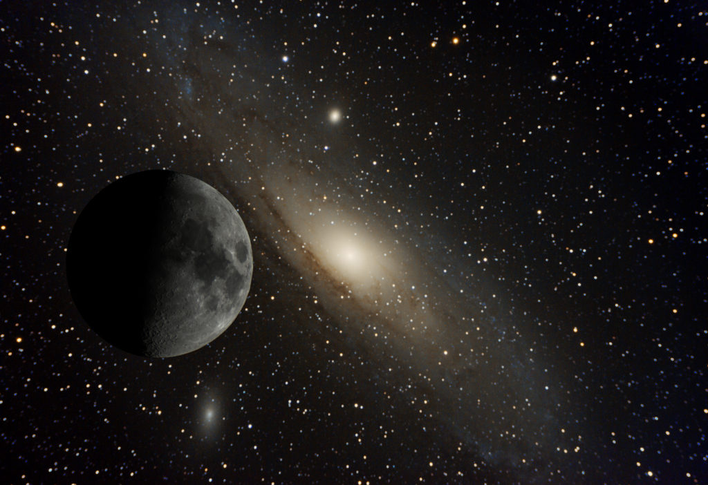 Aloitamme Jarkko Suomisen hienolla komposiittikuvalla kahdesta hyvinkin erilaisesta taivaankohteesta, Andromedan galaksilsta ja Kuusta. Ja miten ne saadaan samaan kuvaan.