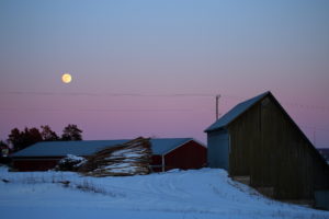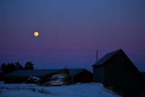 Jäin odottamaan maatamoa ja isäntäkin tuli pihalle katselemaan lumoavaa sirppiä.