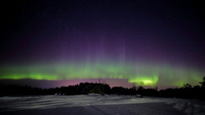 Pirjo Koski pääsi tarkkailemaan aktiivista revontulivyötä Laitilassa 14.3.2018