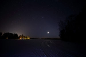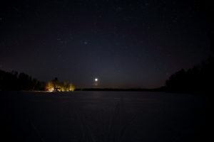 Mietin eläinratavalon sekä kuun sirpin sijaintia taivaalla. Päätin ottaa riskin jäätävästä säästä huolimatta.