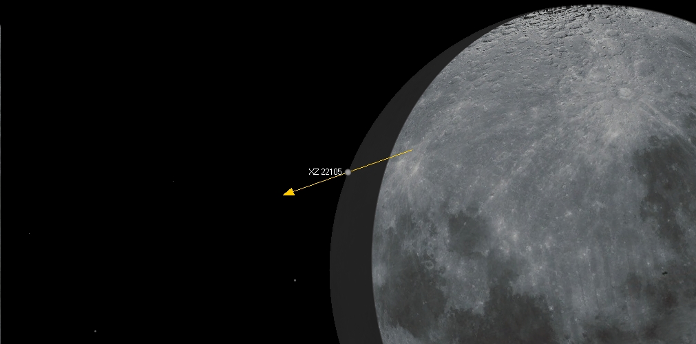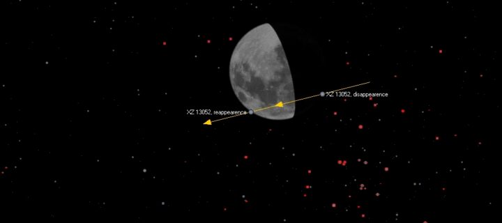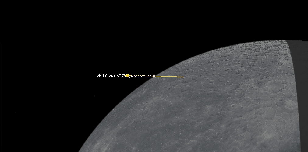 Sama kuva kertoo myös paikan, josta tähti tulee esiin klo 22.50. Kuvassa etelä on ylhäällä. Tähti sivuaa Kuun eteläistä reunaa Ruotsin Gävlen ja Viron Tallinnan lähellä olevalla linjalla. Suomessa sivuaminen saattaa olla havaittavissa kuivalla maalla Ahvenanmaan luoteisimmassa osassa. Kuopiossa tähti tulee esiin etelänavan pohjoispuolella