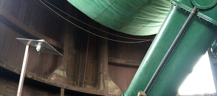 Työpajaan kuului myös opastettu kierros Observatorioon. Pääopas Paula Kyyrö esittelee kaksoisrefraktoria. Kuva: Harri Haukka.