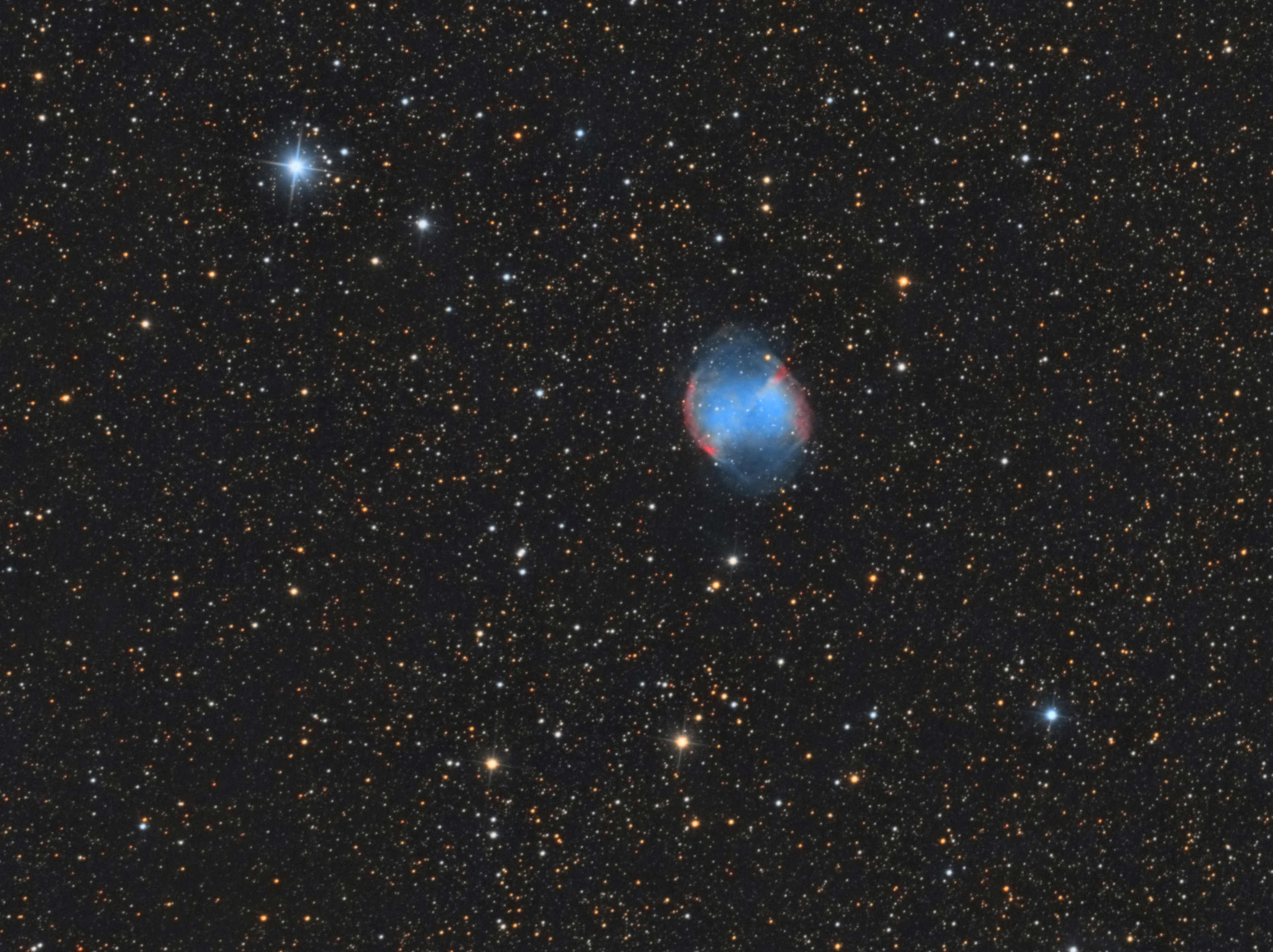 4. M27 eli tuttavallisesti Nostopainosumu on koko taivaan toiseksi kirkkain planetaarinen sumu. Etäisyys sumuun on 1360 valovuotta. Planetaarisen sumun näennäinen koko on on noin 7 kaariminuuttia, eli se näkyy levymäisenä jo kiikareilla. Sumun kirkkaus on noin 7,4 magnitudia. Sumun keskustähti on magnitudiltaan noin 13,8 magnitudia,