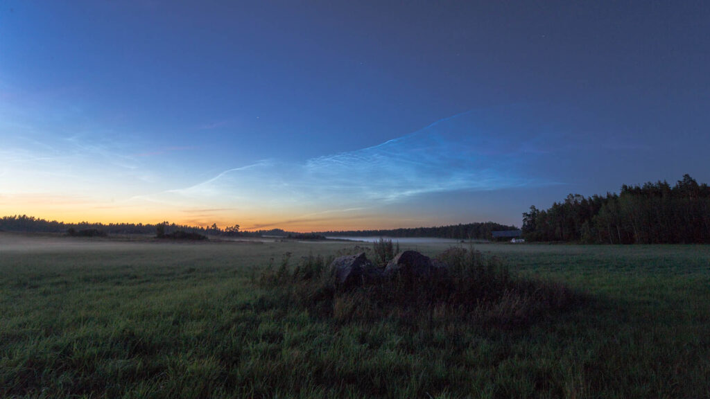 Valaisevat yöpilvet näkyivät tänä kesänä jopa Keski-Euroopassa saakka. Suomessa pilvet näkyivät alkukesällä etelätaivaalla. 17.7.2019 Pirjo Koski kuvasi kauniit keskikesän yöpilvet
