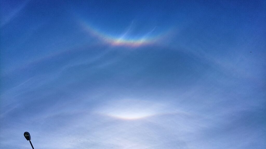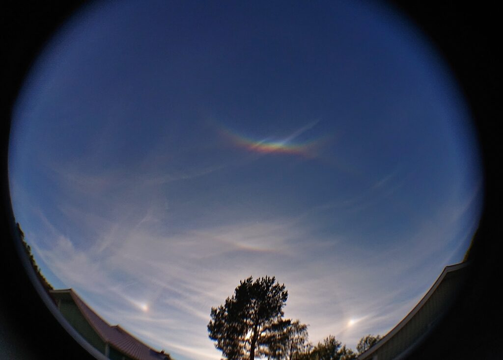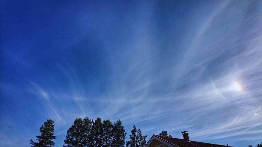 Olin tekemässä pihahommia kun satuin katsomaan ylös.Jehna, melkoinen halo, tämä oli jo lähes pakko kopata talteen vaikka perussettiä olikin eli 22 asteen rengas. Oli kiva jatkaa kopin jälkeen pihatöitä-tähyillen välillä taivaalle…