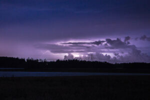 Tsekkasin ukkostutkaa ja päätin ruopaista kello hyvissä ajoin kuvauspaikalle. Loppupeleissä olin hieman myöhässä, koska kamojen (kaksi kameraa ja jalustat) pystytyksessä meni teknisten ongelmien vuoksi tovi. Myös triggerin paristot piti kertaalleen vaihtaa…mitä opimme? Tarkasta paristojen kunto ennen reissua ja varaa aikaa enemmän kuin ajattelit. Klo 12 startannut setti kesti kovimmillaan n.klo kolmeen. Vielä kolmenkin jälkeen paukkui ja välähteli jonkin aikaa. Pari triggeriavusteista salamaa jäi kennolle.