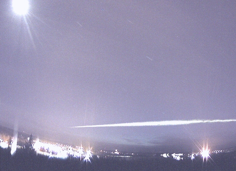Falcon 9 FT -raketin toisen vaiheen jälki tallentui 22.2.2018 Mikkelin Ursan tulipallokameraan. Kuva: Aki Taavitsainen. Napsauttamalla saat kuvan suuremmaksi.