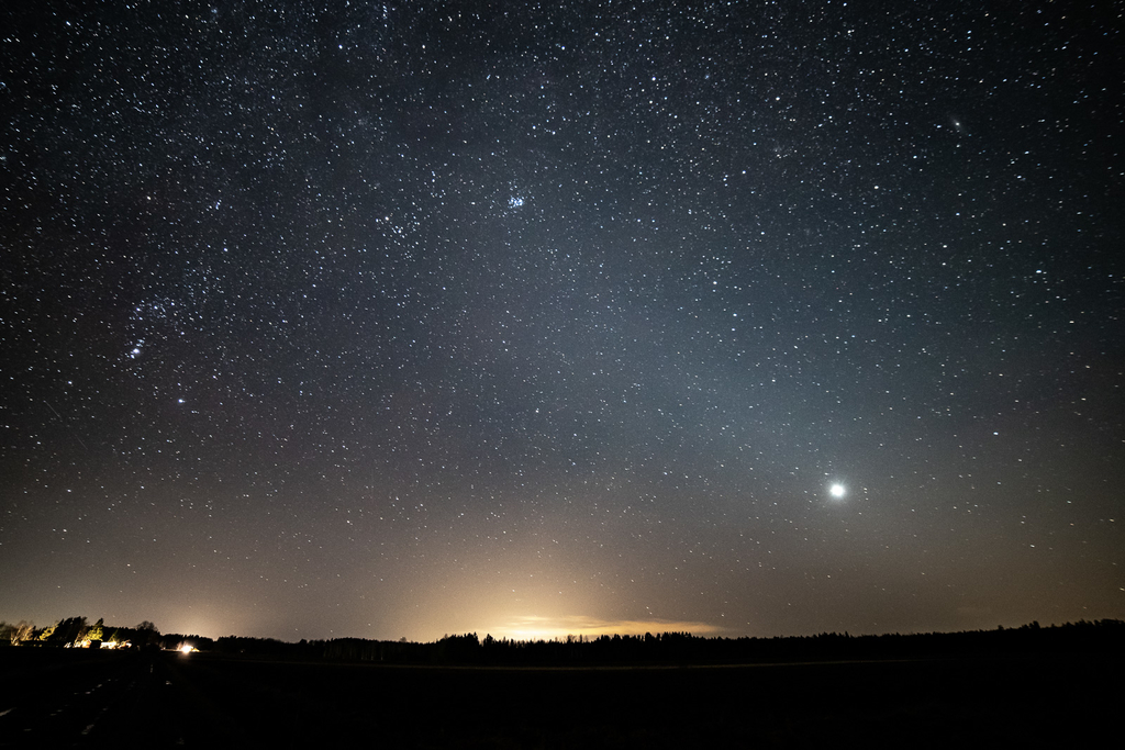 Eläinratavalo. Joskus tammikuussa ensimmäisiä kertoja näkyvä, helmikuussa jo selvästi taivaalta erottuva ja maaliskuussa länsitaivaalla paikoin huomiota herättävä mystinen kiilamainen valoilmiö on kiehtonut minua siitä saakka, kun luin sen olemassa olosta joskus ilmiökuvaus harrastusta aloittaessani. Olin pitkään muuten siinä luulossa, ettei eläinratavalo näy Suomessa.