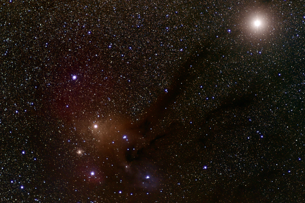 Antareksen alueen sumuja (IC 4603-4606, Barnard 44-45), pallomainen tähtijoukko M4 ja Jupiter 26.2.2020 0
