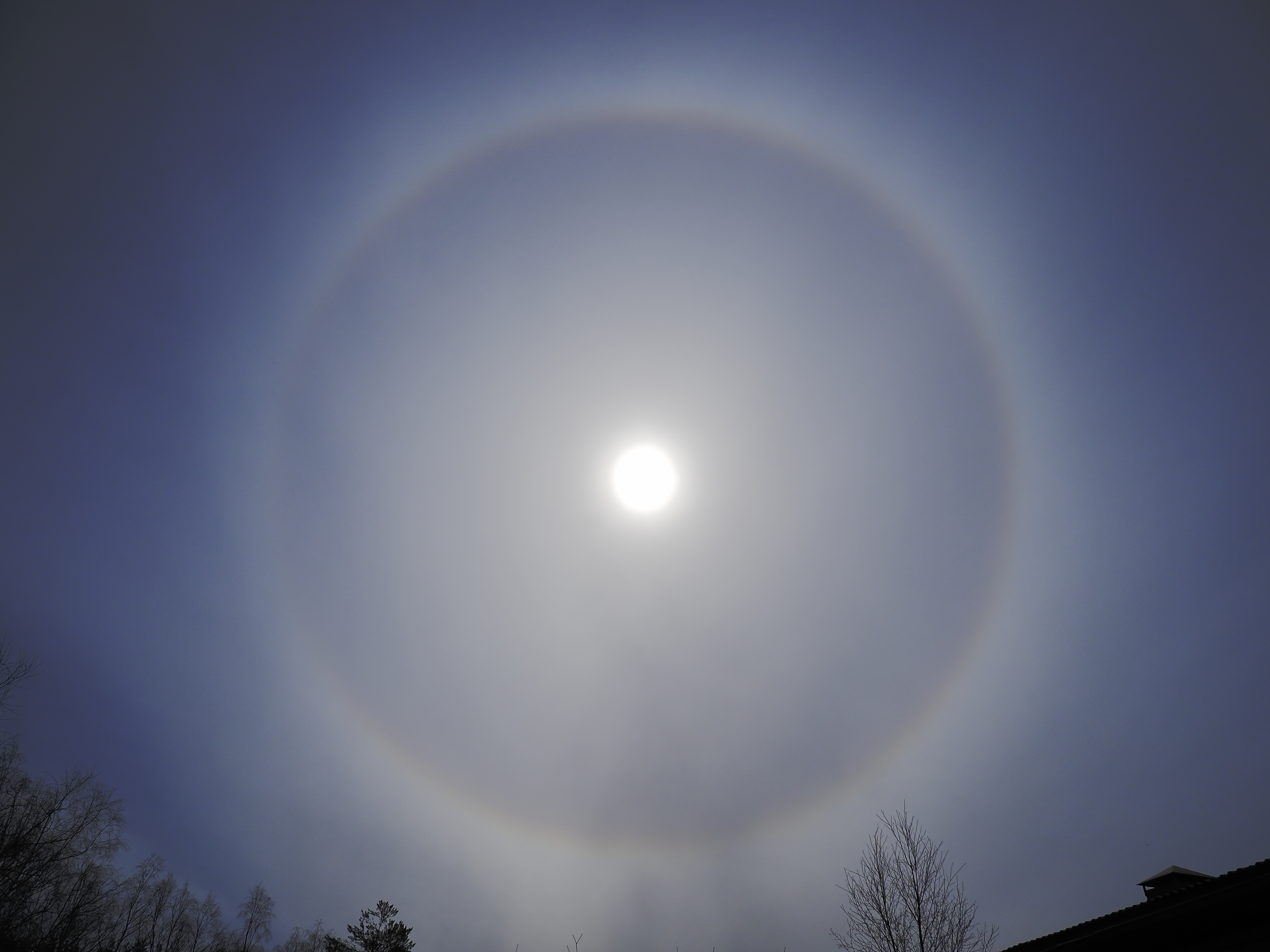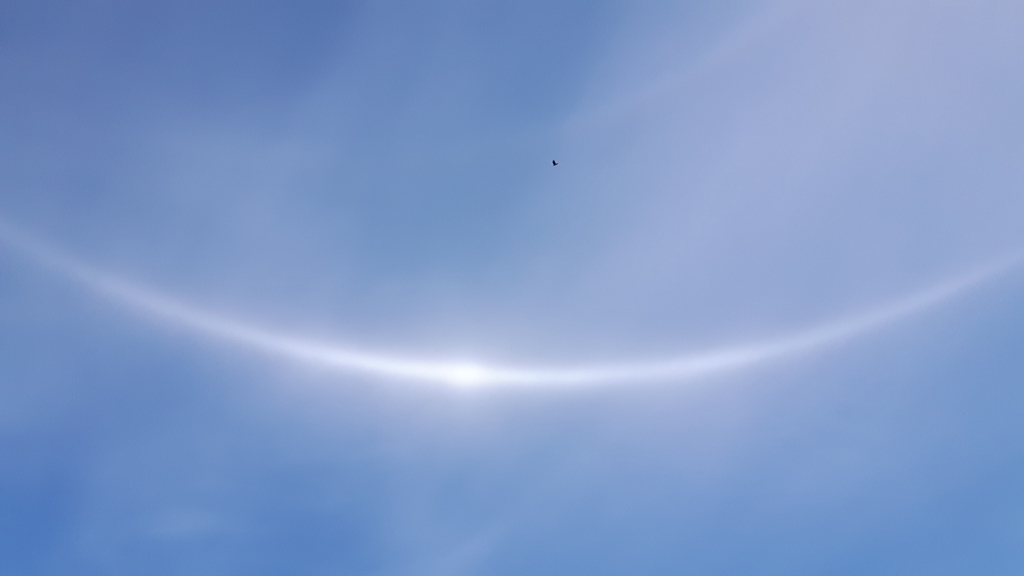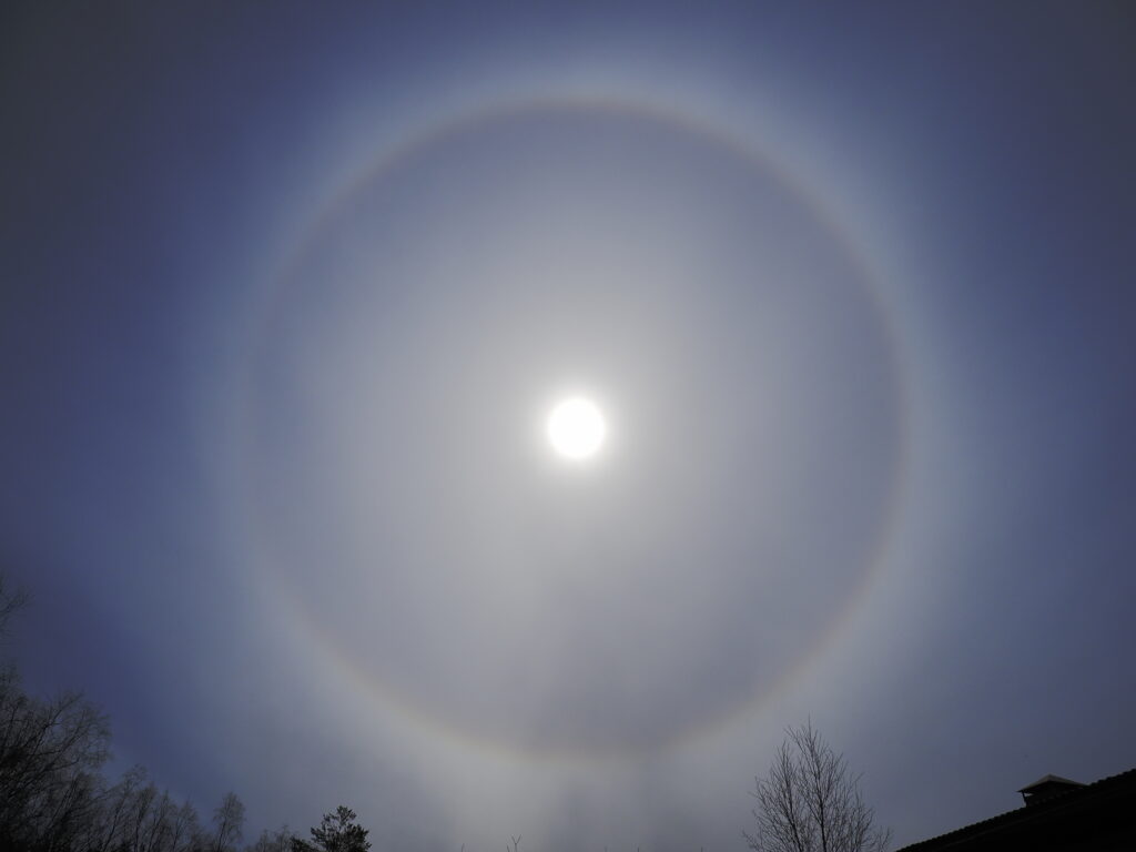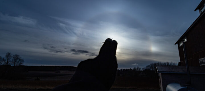 Marko Karkulehto nappasi yhden halohuhtikuun parhaista näytöksistä. 14.4.2020 Ruotsissa, Sölvesborgissa taivaalla näkyivät muun muassa 120° sivuaurinko, yläkovera Parryn kaari ja Wegenerin vasta-aurinkokaari