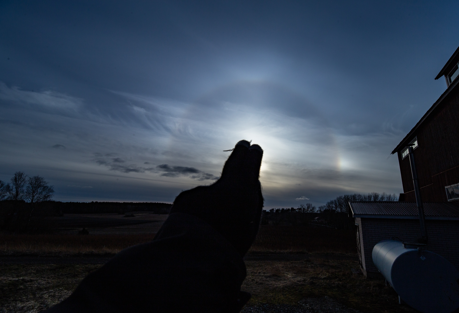 Kuukauden viimeinen halohavainto tuli Kuusamosta, kun Jani päiväniemi kuvasi kauniin sivuauringon laskevalla auringolla.