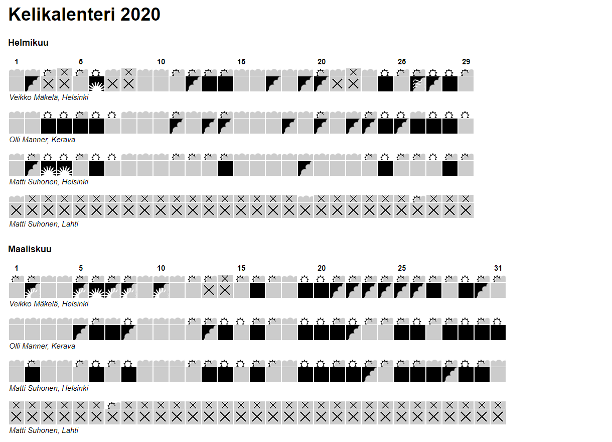 Kelikalenteri helmi-maaliskuu 2020 Sää ja havainto-olosuhteet, Yleinen 8.5.2020 0 Matti Suhonen, Veikko Mäkelä, Olli Manner